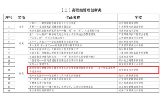 由共青团中央、人力资源社会保障部主办的第十七届“振兴杯”全国青年职业技能大赛(学生组)创新创效专项赛决赛于6月27日至28日举行,本次决赛共有来自全国25个省份的187件作品入围,涵盖技术革新、创意设计和管理创新3个竞赛方向,其中高职组作品114件,中职组作品73件。我校推荐参赛的项目《地铁精细化管理背景下地铁智慧车站运营管理效益提升策略——基于乘客满意度的调查研究》获得铜奖,是我校首次获得“振兴杯”国赛奖项。