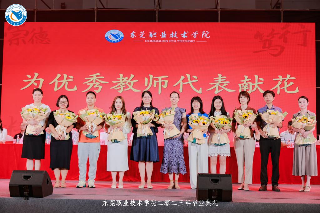 毕业典礼在庄严的国歌声中拉开了序幕。经济与管理学院许绮雯代表毕业生发言,她向母校和所有老师的辛勤培育表达了深深的感谢,表示会以努力和汗水,谱写人生新篇章,以实际行动展现作为东职人的风采。随后,毕业生代表为辛勤耕耘的优秀教师代表和默默付出的后勤工作人员献花,感谢他们的谆谆教导和辛勤付出。