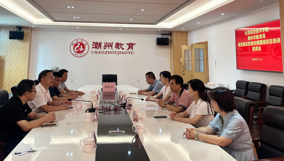为贯彻落实广东省教育厅关于2024年职业院校教师素质提高计划粤东西北校地对接国家级研修项目工作部署,7月11日,我校继续教育学院院长苏江,创意设计学院、智能制造学院、人工智能学院相关专业教师一行5人赴潮州市教育局开展项目调研工作,潮州市教育局副局长廖耀湘,人事科、教师发展中心负责人参与调研交流。