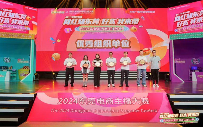 在决赛现场,经过盲盒带货和守擂PK带货两个环节的紧张角逐,我校杜晓君同学以扎实的专业技能和卓越的舞台表现力荣获季军,邓玉婷同学也以良好的表现获得了最具潜力奖,同时两名同学也喜获东莞广播电视台“家乡好物推荐官”的聘书。我校在本次大赛中获得优秀组织单位奖。
