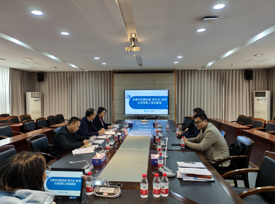 会上,项目负责人薛美贵老师向专家组详细汇报了《东莞市印刷包装“校行企”协同示范性职工培训基地》项目建设实施进展情况、取得的成果以及面临的挑战。随后,专家组通过查阅资料、座谈、实地考察等方式,对项目进行了全面评估,并提出反馈意见和建议。
